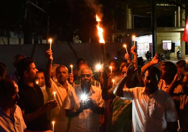 திருப்பூர், மங்கலம் ரோடு பூச்சக்காடு தண்ணீர் தொட்டி வீதியில் பல மாதங்களாக தெருவிளக்கு எரிவதில்லை என மாநகராட்சியை கண்டித்து தீ பந்தம் ஏந்தி ஆர்ப்பாட்டம் நடந்தது.