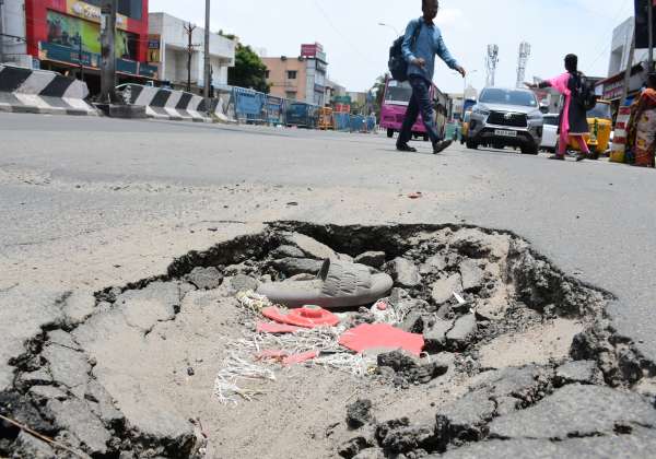 மவுண்ட்- பூந்தமல்லி நெடுஞ்சாலை போரூர் பாலம் அருகே சாலையில் பெரிய பள்ளம் ஏற்ப்பட்டு வாகன ஓட்டிகள் விபத்தில் சிக்கும் நிலையில் உள்ளது