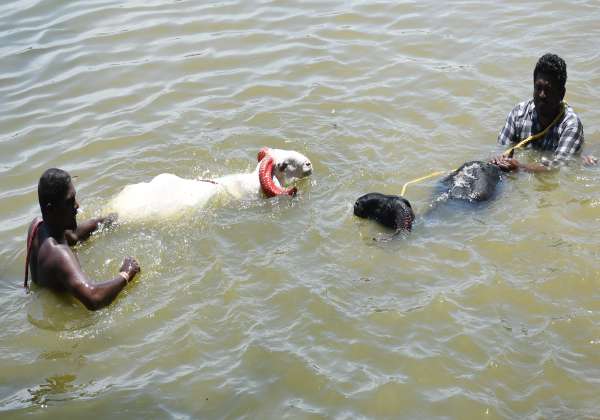 நீச்சலடிக்கும் ஆட்டுக் கிடா:மதுரையில் பெய்த மழையால் ஆலங்குளம் கண்மாய் நிரம்பியதை தொடர்ந்து கிடா ஆடுகளுக்கு நீச்சல் பயிற்சி அளிக்கப்பட்டது.