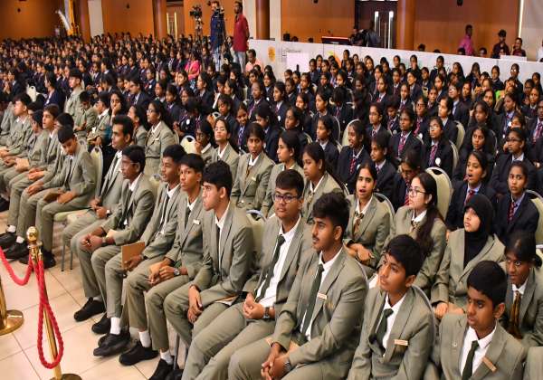 கோவை வெள்ளலூர் எஸ்.எஸ்.வி.எம்., சர்வதேச பள்ளி வளாகத்தில் உருமாறும் இந்தியா மாநாடு நடந்து வருகிறது. இதில், கலந்து கொண்ட மாணவர்கள் .