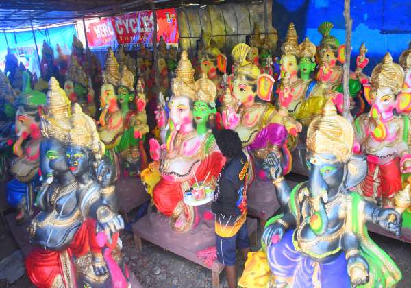 விநாயகர் சதுர்த்தி விழாவையொட்டி விருத்தாச்சலம் அய்யனார் கோவில் தெருவில் விநாயகர் சிலை செய்யும் பணி தீவிரமாக நடக்கிறது.