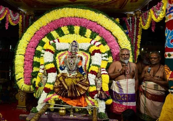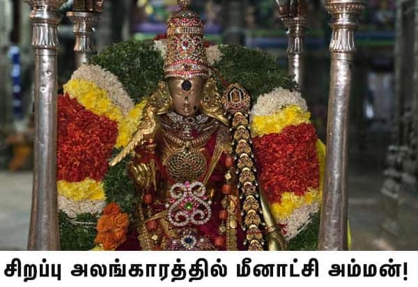 மதுரை மீனாட்சி அம்மன் கோவில் தெப்பத் திருவிழா இன்று நடக்க உள்ளதை முன்னிட்டு, வெள்ளி அவுதா தொட்டிலில் அம்மன்.