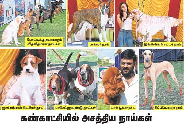 மெட்ராஸ் கெனைன் கிளப் சார்பில் சென்னையில் நடந்த நாய் கண்காட்சியில் பங்கேற்று அசத்திய விதவிதமான நாய்கள். இடம்: செயின்ட் பீட்ஸ் பள்ளி மைதானம், மயிலாப்பூர்.