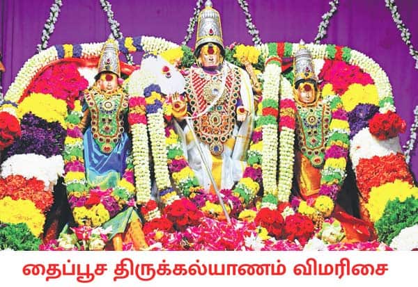 தைப்பூச விழாவை முன்னிட்டு, பழனி பெரியநாயகியம்மன் கோவிலில் திருக்கல்யாணம் நடந்தது. மணக்கோலத்தில் வள்ளி, தெய்வானையுடன் முத்துக்குமாரசுவாமி.