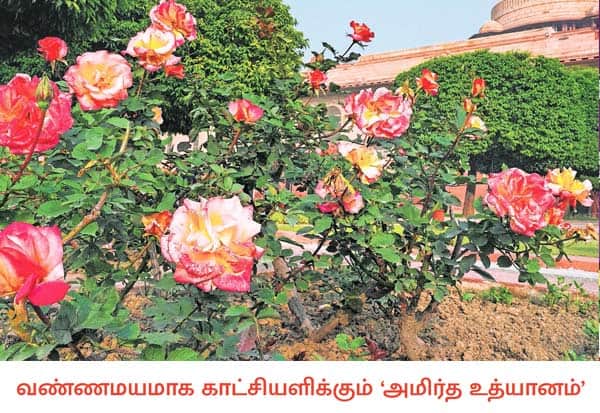 டில்லி ஜனாதிபதி மாளிகையில் உள்ள புகழ்பெற்ற அமிர்த உத்யானம் எனப்படும் மலர்த்தோட்டம் பொதுமக்களின் பார்வைக்காக வரும் 3ம் தேதி முதல் மார்ச் 31ம் தேதி வரை திறக்கப்படுகிறது. தோட்டத்தில் பூத்து குலுங்கிய வண்ண மலர்கள்.