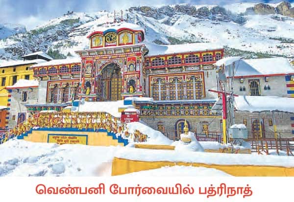 உத்தரகண்ட் மாநிலம் சமோலி மாவட்டத்தில் நிலவும் கடும் பனிபொழிவால் பத்ரிநாத் கோவில் முழுவதும் வெண் பனியால் போர்த்தப்பட்டு ரம்மியமாக காட்சி அளித்தது.