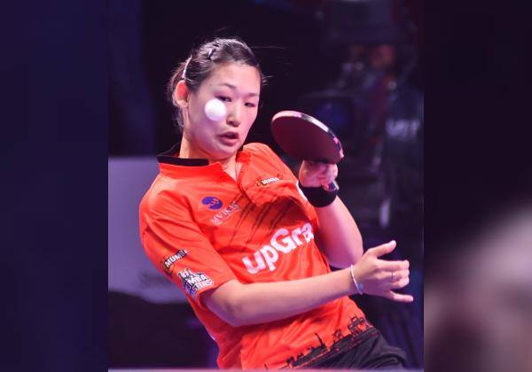 யு.டி.டி டேபிள் டென்னிஸ் போட்டியின் பெண்கள் ஒற்றையர் பிரிவில் வெற்றி பெற்ற மும்பை அணியின் மரியா சியாவோ