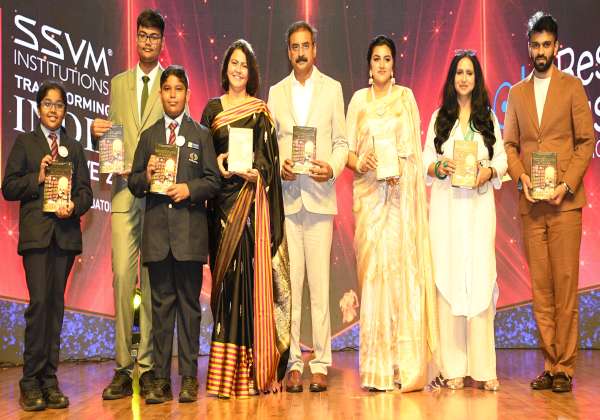 கோவை வெள்ளலூர் எஸ்.எஸ்.வி.எம்., சர்வதேச பள்ளி வளாகத்தில், உருமாறும் இந்தியா என்னும் மாநாட்டில் எம்.பி., சசிதரூர் காணொளி வாயிலாக தனது புதிய நூலை வெளியிட்டார் அருகில் எஸ்.எஸ்.வி.எம்., கல்வி குழுமம் நிறுவனர் மணிமேகலை மோகன், அறங்காவலர் மோகன்தாஸ், கல்வி இயக்குனர் ஶ்ரீஷா, பத்திரிக்கையாளர் ஷோமா சவுத்ரி உள்ளிட்டோர்.