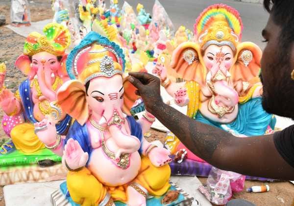 விநாயகர் சதுர்த்தி விழா நெருங்குவதையொட்டி பொதுமக்கள் வீடுகளில் வைத்து வழிபட விற்பனைக்கு வந்துள்ள வண்ண விநாயகர் சிலைகள்.இடம் : இ.சி.ஆர், நீலாங்கரை.