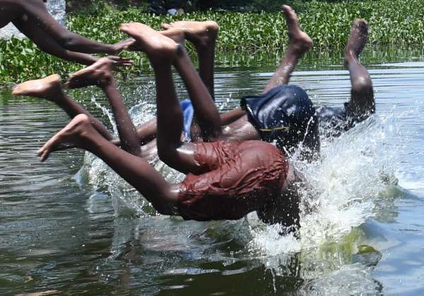 தொடர் மழையால் நிரம்பி ததும்பும் மதுரை வண்டியூர் கண்மாயில் துள்ளி குதித்துக் குளித்த இளசுகளின் டைவ் தான் இது.