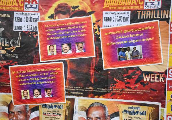 பொள்ளாச்சி காந்தி சிலை அருகே சுவர்களில் கனிம வள கொள்ளை குறித்து ஒட்டப்பட்ட போஸ்டரால் பரபரப்பு ஏற்பட்டது.