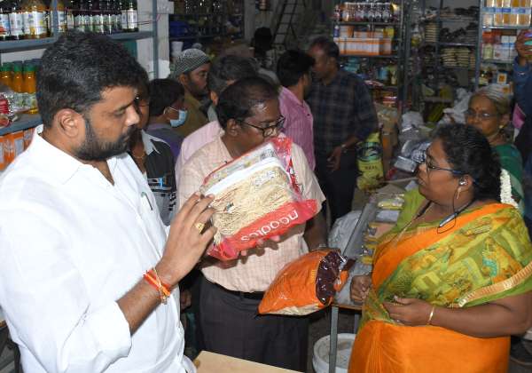 தேனியில் கடைகளில் மாவட்ட உணவு பாதுகாப்புத்துறை நியமன அலுவலர் டாக்டர் ராகவன் ஆய்வு செய்தார்.