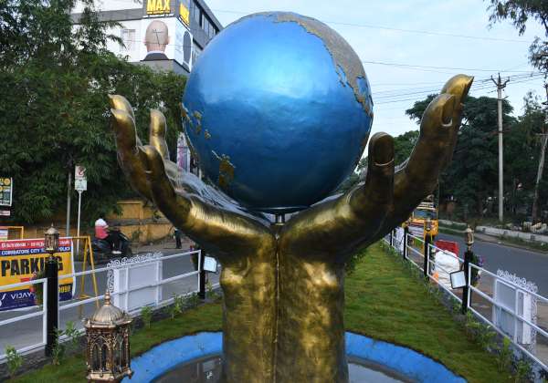 கோவை ரேஸ் கோர்ஸ் ரவுண்டானா பகுதியில் பொதுமக்கள் பார்வைக்காக புதிதாக வைக்கப்பட்டுள்ள சிலை.