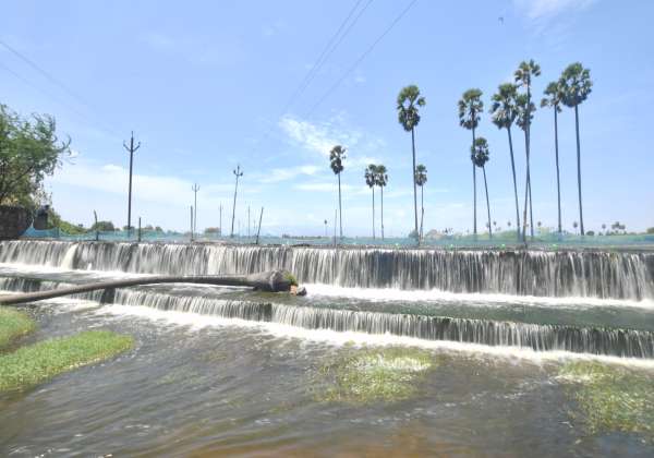 திருநெல்வேலி மாவட்டம் கரையிருப்பு பகுதியில் உள்ள குளம் நிறைந்து உபரி நீர் வெளியேறி ரம்மியமாக காட்சியளித்தது.