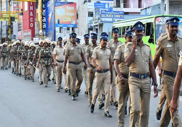 விநாயகர் சதுர்த்தி பாதுகாப்பு கொடி அணிவகுப்பு நடத்திய திருப்பூர், மாநகர போலீசார்.