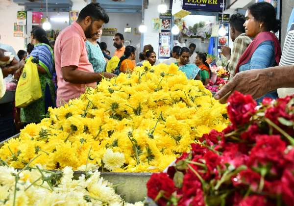 விநாயகர் சதுர்த்தியை முன்னிட்டு திருப்பூர், தினசரி பூ மார்க்கெட்டில் விற்பனை நடந்தது.
