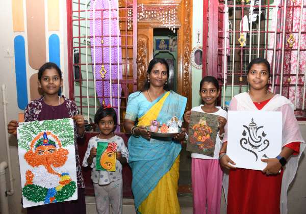 விநாயகர் சதுர்த்தியை முன்னிட்டு பள்ளி மாணவர்கள் பலவிதமான ஓவியங்களில் விநாயகர் வரைந்து உள்ளனர். இடம் : விழுப்புரம் அடுத்த பாணாம்பட்டு.
