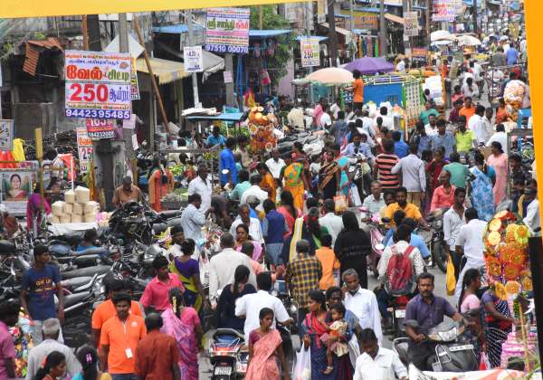 விநாயகர் சதுர்த்தி முன்னிட்டு விழுப்புரம் எம் ஜி ரோட்டில் பொதுமக்கள் பூஜை பொருட்கள் வாங்க வந்த கூட்டம் குவிந்தது.