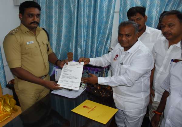 விழுப்புரம்டிஎஸ்பி சுரேஷிடம் பதில் மனுவை வழங்கிய தமிழக வெற்றிக் கழகத்தின் பொதுச்செயலாளர் புஸ்ஸி ஆனந்த்