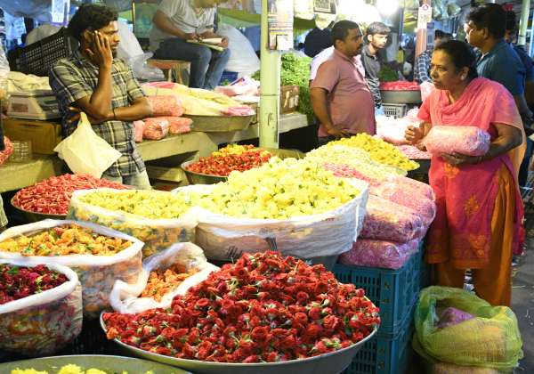 விநாயகர் சதுர்த்தியை முன்னிட்டு கோவை பூ மார்க்கெட்டில் கலை கட்டிய பூ விற்பனை.