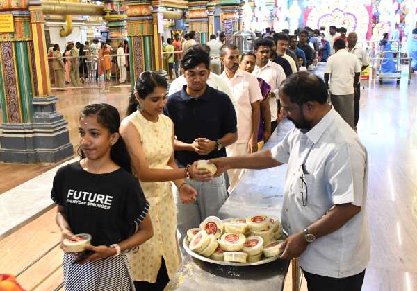 விநாயகர் சதுர்த்தியை யொட்டி மணக்குள விநாயகர் கோவிலில் சுவாமியை தரிசிக்க வந்த பக்தர்களுக்கு கோவில் சார்பில் பிரசாதம் வழங்கப்பட்டது.