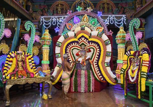 மணக்குள விநாயகர் கோவிலில் சிறப்பு அலங்காரத்தில் பக்தர்களுக்கு அருள்பாலித்த சுவாமிகள்.