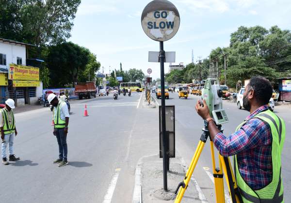கோவை சாய்பாபா கோவில் மேட்டுப்பாளையம் ரோட்டில் மேம்பாலம் அமைப்பதற்கான முதல் கட்டமாக குறியீடு செய்யும் பணி துவங்கியுள்ளது.