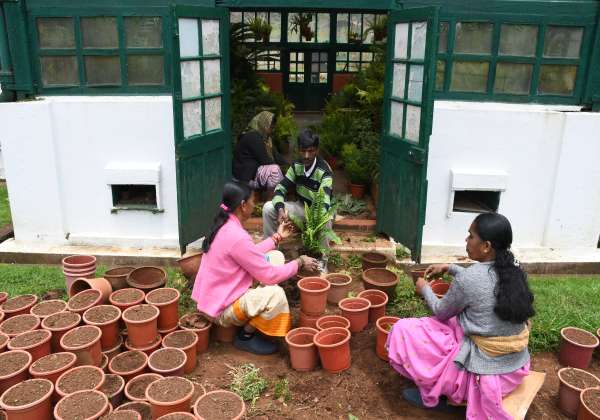 ஊட்டி தாவரவியல் பூங்கா, பேரனி இல்லத்தில் உள்ள செடிகள் பராமரிப்பு பணிகள் நடந்து வருகிறது.