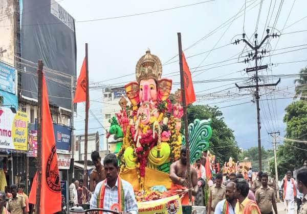 தேனி மாவட்டம் கம்பத்தில் விநாயகர் சிலை ஊர்வலம் நடைபெற்றது