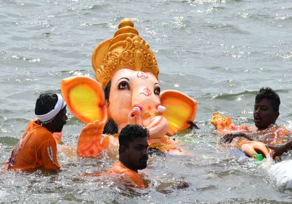 விநாயகர் சதுர்த்தியொட்டி பல்வேறு பகுதிகளில் பிரதிஷ்டை செய்யப்பட்ட விநாயகர் சிலைகள் கோவை குறிச்சி குளத்தில் விசர்ஜனம் செய்யப்பட்டது.
