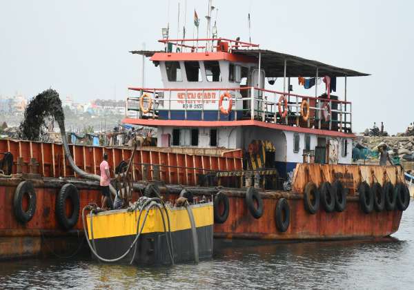 சென்னை காசிமேடு மீன்பிடி துறைமுகத்தில் டிரஜ்ஜிங் செய்து ஆழப்படுத்தும் பணி நடக்கிறது.