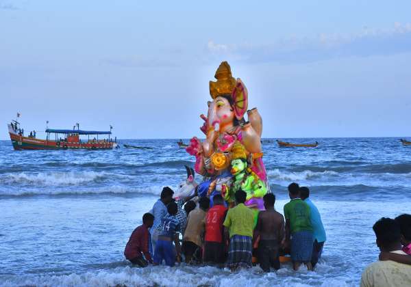விழுப்புரம் மாவட்டம் கோட்டகுப்பம் அடுத்த தந்திராயன் குப்பம் கடற்கரையில் பெரிய அளவிலான விநாயகர் சிலைகள் விசர்ஜனம் செய்யப்பட்டது.