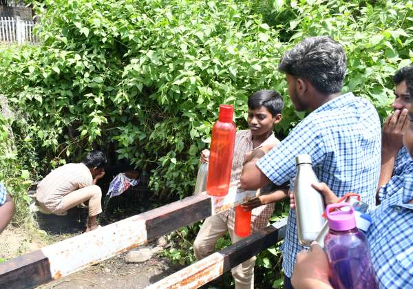 தென்காசி மாவட்டம் கடையம் ரயில்வே கேட் அருகே முதலியார்பட்டி அரசு மேல்நிலைப் பள்ளியில் குடிநீர் வராததால் சாலையில் உள்ள கேட்வால்வில் கசியும் தண்ணீரை பிடித்து ஆபத்தான முறையில் சாலையை கடந்து செல்லும் மாணவர்கள்.