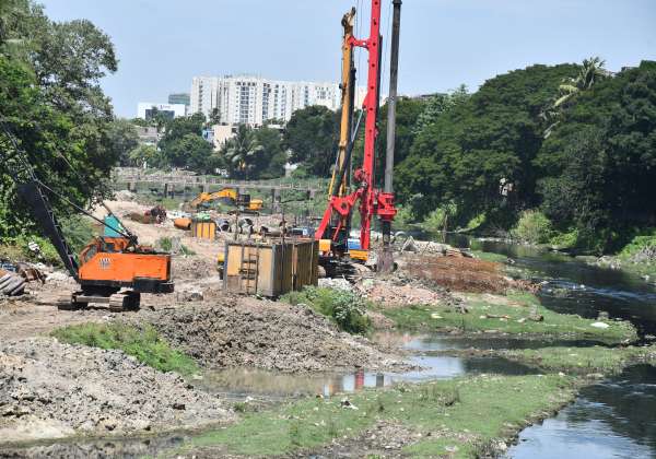 மதுரவாயல் - துறைமுகம் மேம்பால சாலை திட்டத்திற்கான பைலிங் ரிக் பணி நடந்து வருகிறது. இடம் : நடுவங்கரை, அரும்பாக்கம்