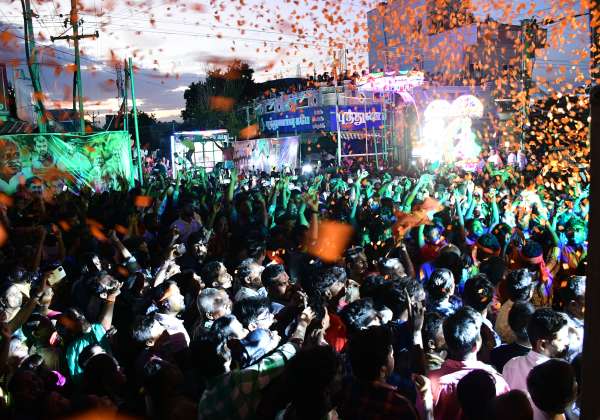 இந்து முன்னணி சார்பில், விநாயகர் சதுர்த்தி விசர்ஜன ஊர்வலம் திருப்பூரில் நடந்தது. செல்லம் நகர் பகுதியில் லேசர் ஒளி வெள்ளத்தில் நடனமாடியபடி வந்த வாலிபர்கள்.