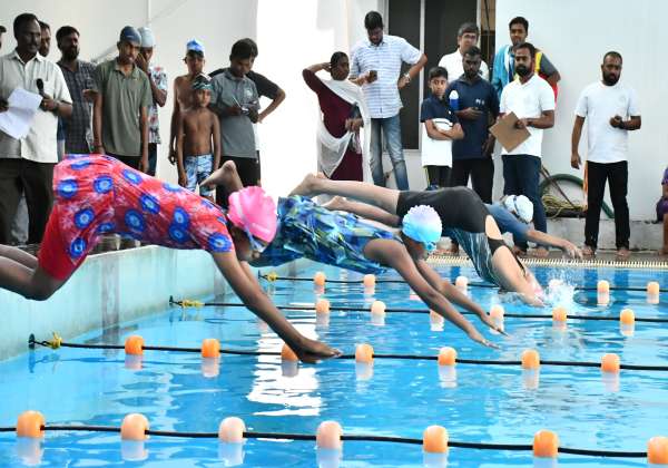 திருப்பூர், வேலம்பாளையத்தில் முதல்வர் கோப்பை நீச்சல் போட்டி நடந்தது.