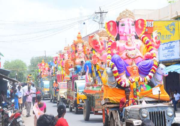 மங்கலம்பேட்டையில் பிரதிஷ்டை செய்யப்பட்ட விநாயகர் சிலைகள் ஊர்வலமாக எடுத்துச் செல்லப்பட்டு விஜர்சனம் செய்யப்பட்டன.