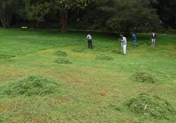 ஊட்டி தாவரவியல் பூங்கா , புல்தரை பராமரிப்பு பணிகள் நடந்து வருகிறது.