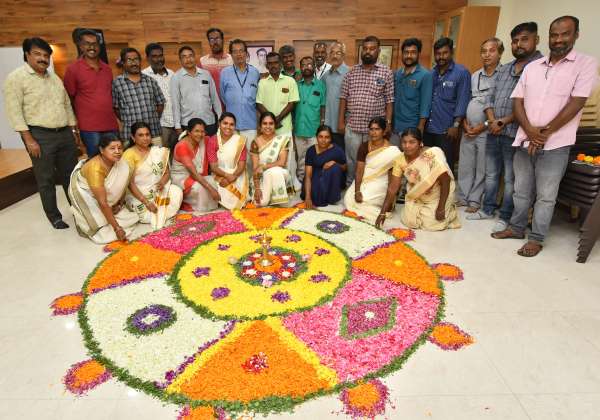 ஓணம் பண்டிகையையொட்டி கோவை சுந்தராபுரம் தினமலர் நாளிதழ் அலுவலகத்தில் பூக்கோலமிட்டு கொண்டாடிய ஊழியர்கள் .