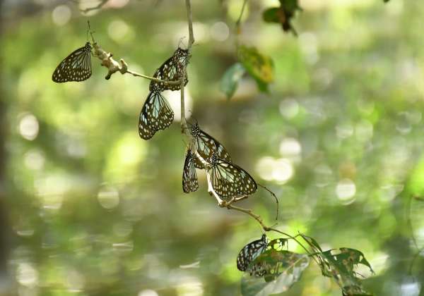 மரக்கிளைகளில் இலைகள் போல் காட்சியளிக்கும் பட்டாம்பூச்சிகள். இடம் : விழுப்புரம் கலெக்டர் பெருந்திட்ட வளாகம்.