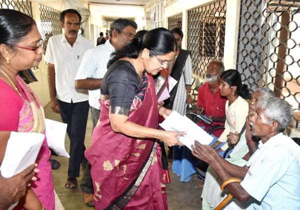 திண்டுக்கல்லில் மக்கள் குறைதீர்க்கும் நாள் கூட்டத்தில் மாற்றுத்திறனாளிகளிடம் இருந்து கோரிக்கை மனுக்களை கலெக்டர் பூங்கொடி பெற்றுக் கொண்டார்.