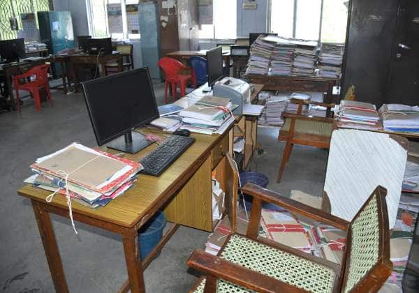 தேனி மாவட்ட நிர்வாகம், சென்னை வருவாய் நிர்வாக ஆணையர் அலுவலகத்தின் ஊழியர் விரோத போக்கினை கண்டித்து வருவாய்த்துறை அலுவலர் சங்கத்தினர் தற்செயல் விடுப்பு போராட்டத்தில் ஈடுபட்டதால் ஊழியர்கள் இன்றி வெறிச்சோடியது. இடம் : தேனி கலெக்டர் அலுவலகம்