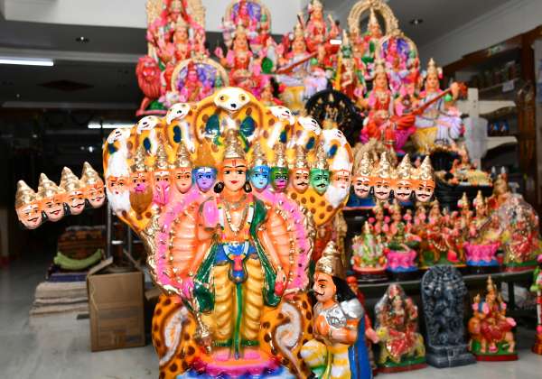 கொலு பொம்மைகள் விற்பனைக்கு வைக்கப்பட்டுள்ளது. புது மார்க்கெட் வீதி, திருப்பூர்.