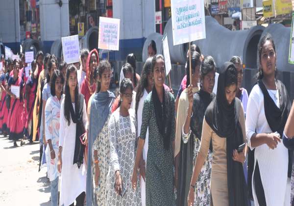 தேசிய ஊட்டச்சத்து மாதத்தையொட்டி கோவை மாவட்ட ஒருங்கிணைந்த குழந்தை வளர்ச்சி திட்டப்பணிகள் சார்பில் நடந்த விழிப்புணர்வு பேரணியில் கலந்து கொண்ட மாணவிகள்.