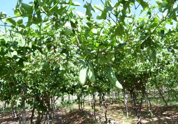 பந்தலில் காய்த்து தொங்கும் கோவக்காய்கள். இடம்.உடுமலை