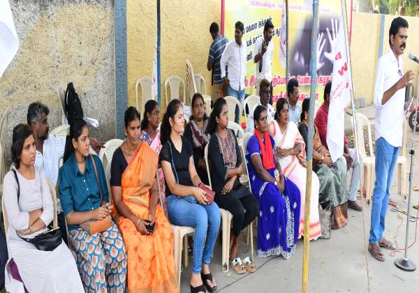 கோவை சிவானந்தா காலனி அருகே பெண்கள் குழந்தைகள் மீதான தொடர் பாலியல் வன்முறைகளை தடுக்க கோரி பெண்கள் அமைப்பு சார்பில் பட்டினி போராட்டம் நடந்தது.
