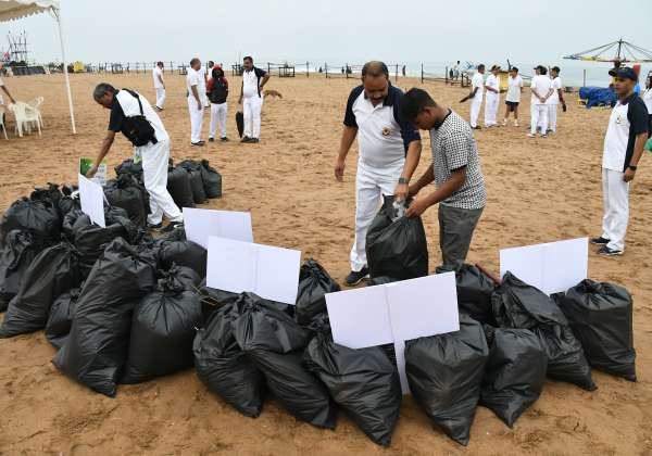 சர்வதேச கடற்கரை தூய்மை தினத்தையொட்டி இந்திய கடலோரக் காவல்படையினர் சார்பில் எலியட்ஸ் கடற்கரையில் சுத்தம் செய்யும் பணி நடந்தது இடம் : பெசன்ட் நகர்.