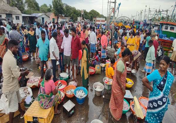 புரட்டாசி மாதத்தை யொட்டி, மீன் விலை குறைந்தது. இடம்: கடலூர் முதுநகர்