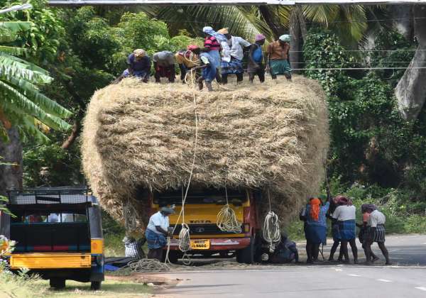 லாரியே தெரியாத அளவிற்கு ஆபத்தான முறையில் வைக்கோல்களை ஏற்றுவதால் விபத்துகள் ஏற்படும் அபாயம் ஏற்பட்டுள்ளது.இடம்: தென்காசி மாவட்டம்,இலஞ்சி.
