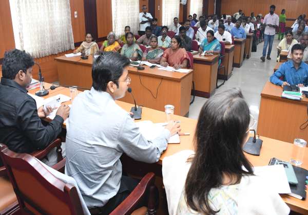 வடகிழக்கு பருவமழை காலங்களில் முன்னெச்சரிக்கை நடவடிக்கைகள் குறித்த ஆய்வு கூட்டம் கலெக்டர் கிராந்தி குமார் தலைமையில் நடைபெற்றது. இடம்: கோவை கலெக்டர் அலுவலகம்.